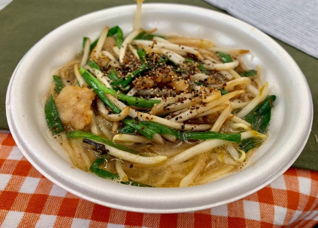 細めの麺にもやしやニラ、そしてにんにくが絡んで、ついつい食べ進めちゃう一品。