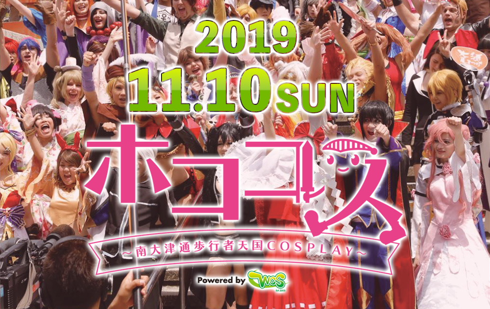 11月10日(日)で、南大津通歩行者天国は、来春までいったんお休みです。秋のホコ天のフィナーレを飾る「ホココス」に、あなたも、ぜひお越し下さい。