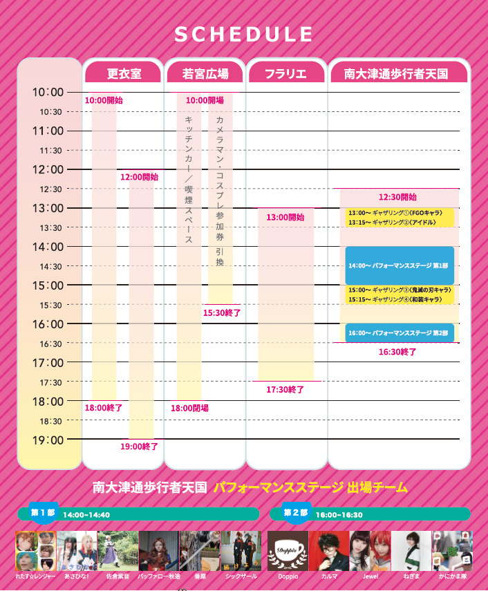 日 時 :2019年11月10日(日)更衣室利用 10:00~19:00、歩行者天国 12:30~16:30
