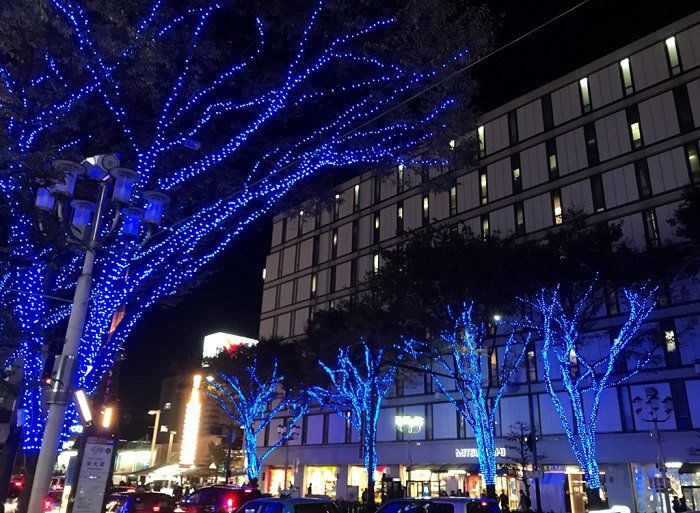 みなさんは、もうご存知ですか?大津通りのイルミネーションは青一色なんです。