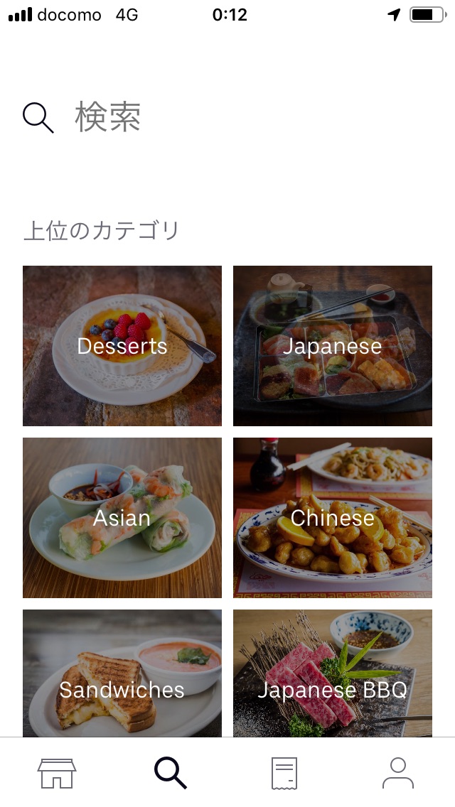 検索画面からお店を検索して注文します。