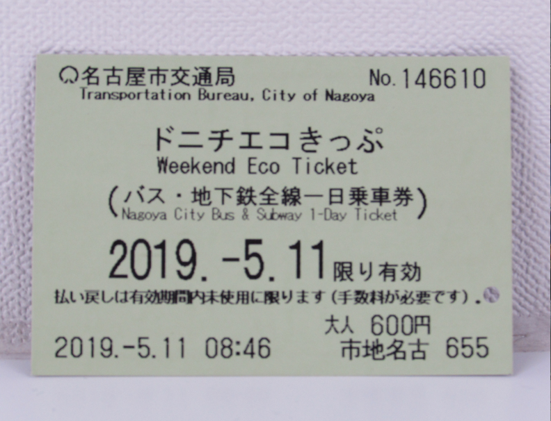 ドニチエコ切符は手続き不要で地下鉄の自動券売機から購入可能です。こういったイベント事は土日が多いためエコ切符の存在は嬉しいですっ! 当日に限り名古屋市営地下鉄の前線が600円で使い放題!もちろん現地入りや帰りの交通手段としても使えますので是非とも試してみてください!