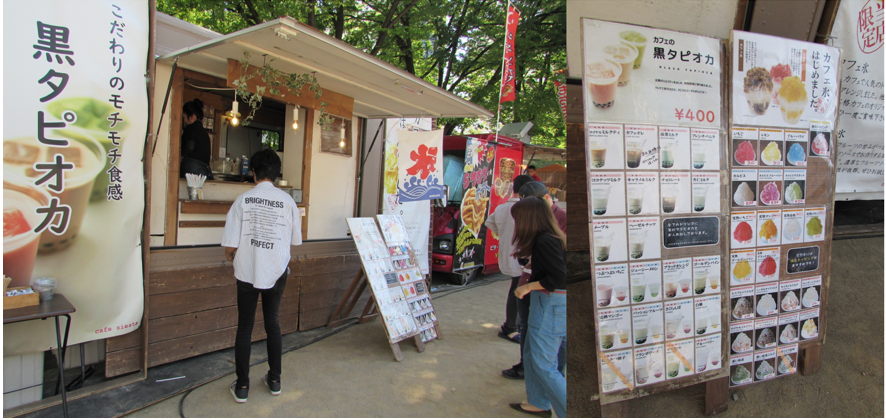 音楽際開催期間中は出店や移動販売車が多く出店されていてお祭り感が増し増しです!唐揚げ、ケバブ、タピオカ、クレープなどなど。そんな中僕ら取材班のチョイスは「黒タピオカドリンク」