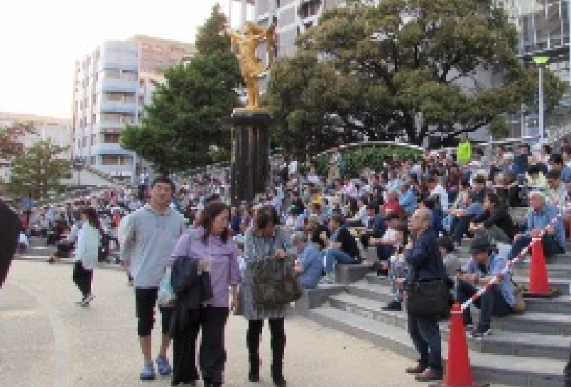 時間が経つごとに観覧席はどんどん埋まっていきました!前席の青ベンチはいっぱい!後列の階段までもが人でいっぱいでした! 公園が全部とLoftまで人が押し寄せる光景は圧巻でした!明日は日曜日だけどどうなるんだろう~!