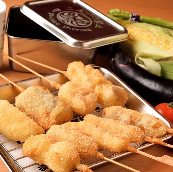 串カツ、豚、とり、イカ、エリンギ、うずらをご提供!