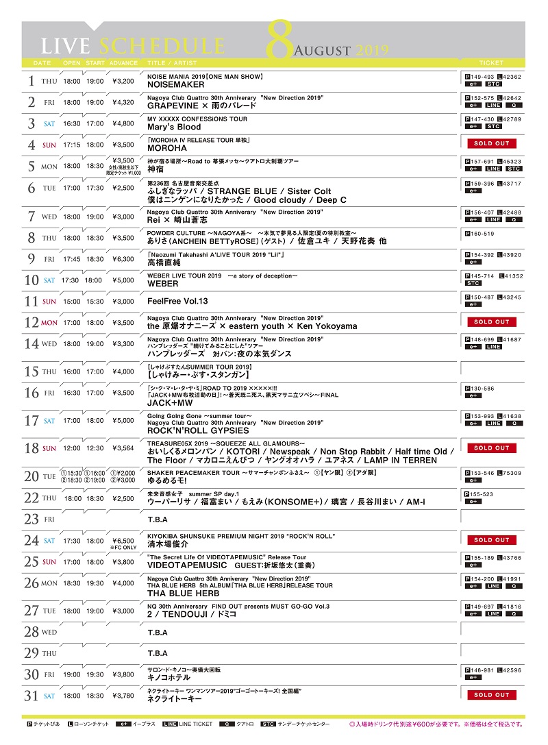 Nagoya Club Quattro 30th Anniversary “New Direction 2019” 特設HP