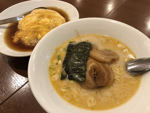 今回は『麺飯セット』の天津飯と豚骨ラーメンの組み合わせにしました!