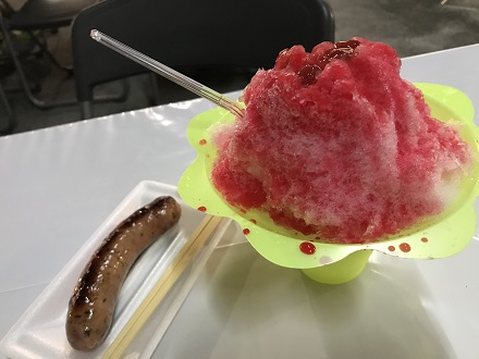フランクフルトにかき氷…どまつりで夏まつり気分を味わうことが出来て大満足です!他にも、タピオカミルクティや唐揚げ、石巻の浜焼きなど美味しそうな匂いが充満していました。どまつりに来たらぐるめぱーく会場のも足を運んでみてください!
