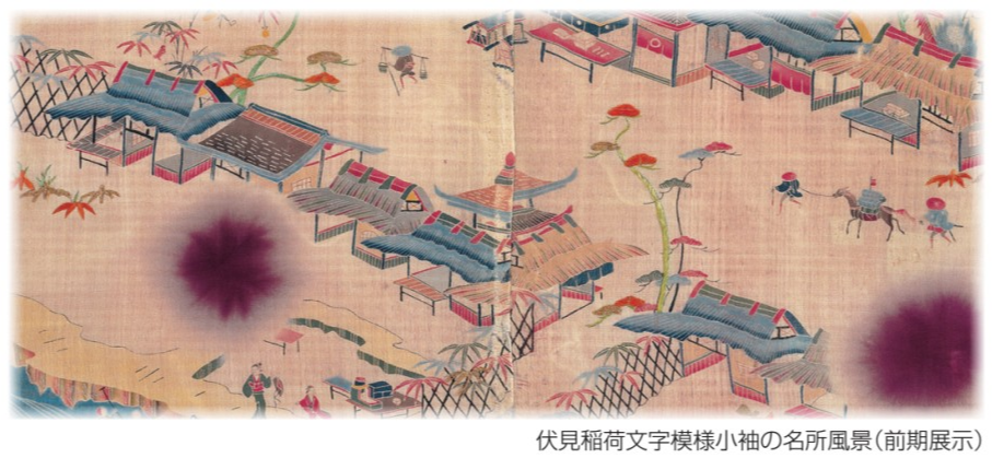 今回の企画展は、江戸中期に起こった一大観光ブーム(伊勢参りや富士講など)に端を発し、日本全国の名所風景を、その当時オシャレ着として愛用されていた小袖の模様として描かれた作品を展示するもの。