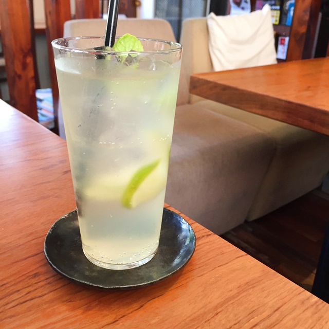 食後は期間限定ドリンクメニューの【ライム&レモングラススカッシュ】で一息。爽やかな酸味を感じるスパークリングドリンクです。コースターが超カワイイですね!お値段は600円(税込)。