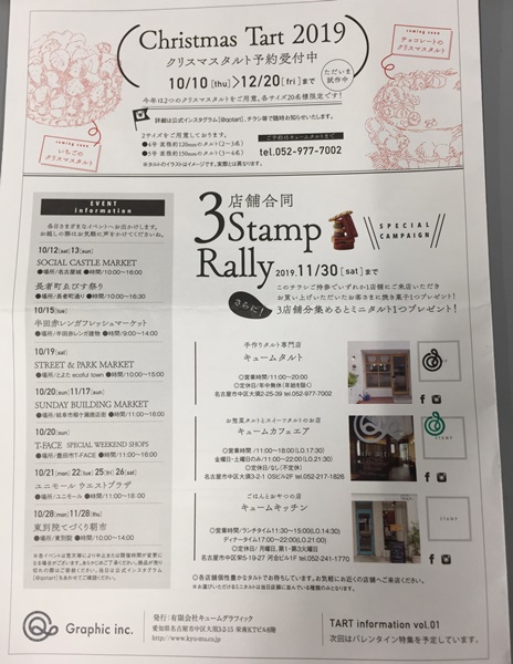 先日『キュームタルト』に伺ったときにスタンプラリー用紙をもらっていたので、今回も押してもらいました!あとは『キュームキッチン』でコンプリート出来ますね…。(今度行きます)