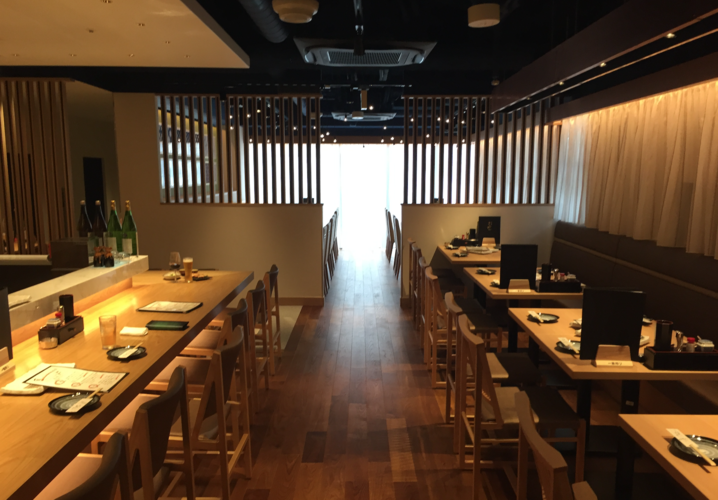 すっきりと清潔感のある店内は、カウンターとテーブルの開放感ある空間。