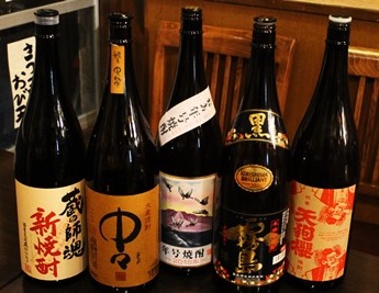 焼酎好きの大将がセレクトした数々の焼酎がずらり~!!あなたも置きボトルしてみては?焼酎はなんと約280種!