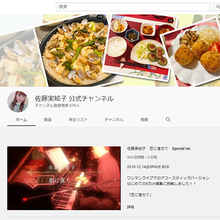 YouTube【佐藤実絵子 公式チャンネル】のご紹介です! ライブの様子や、みえこごはんを配信してます☆