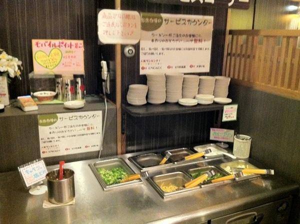 ネギや塩だれキャベツが無料で食べれる、『サービスカウンター』もあります!