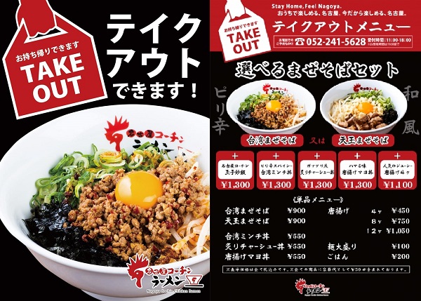 名古屋コーチンラーメン栄店では、「Stay Home,Feel Nagoya. おうちで楽しめる、名古屋。今だから楽しめる、名古屋。」として