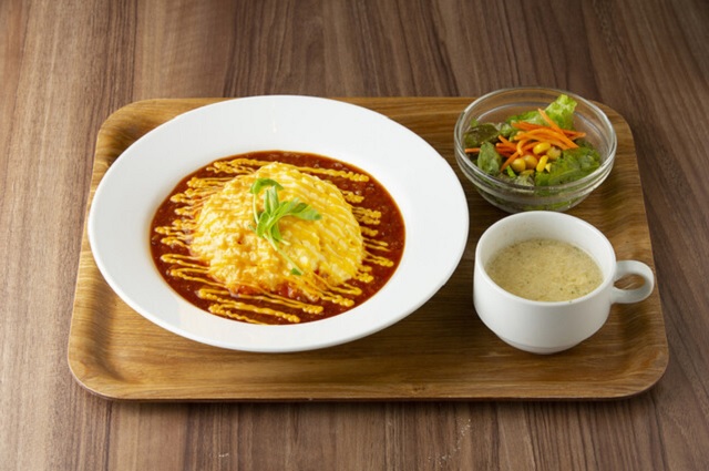 とろとろ半熟たまごにじっくり煮込んだデミグラスソースが相性抜群!※スープ・サラダつき