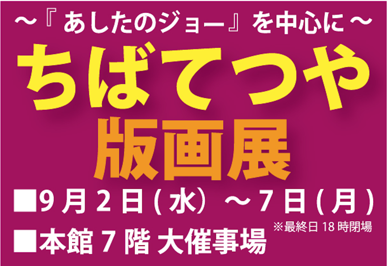 大人気コミックであり、大ヒットアニメとなった「あしたのジョー」はいうまでもなく、「おれは鉄兵」「ハリスの旋風」「のたり松太郎」「あした天気になあれ」など、数々の人気作品を生み出したちばてつや氏の作品の版画の展示販売会が、松坂屋名古屋店の本館7階大催事場で開催されます。
