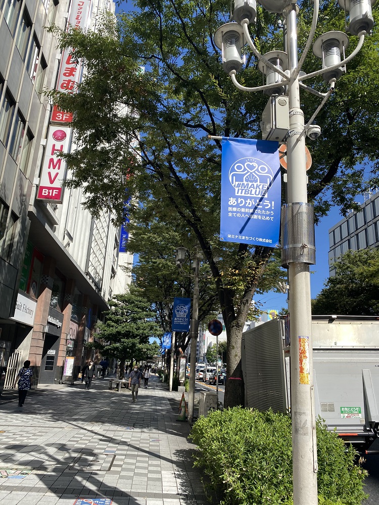 【MAKE IT BLUE】バナーフラッグ、栄ミナミで展開中!