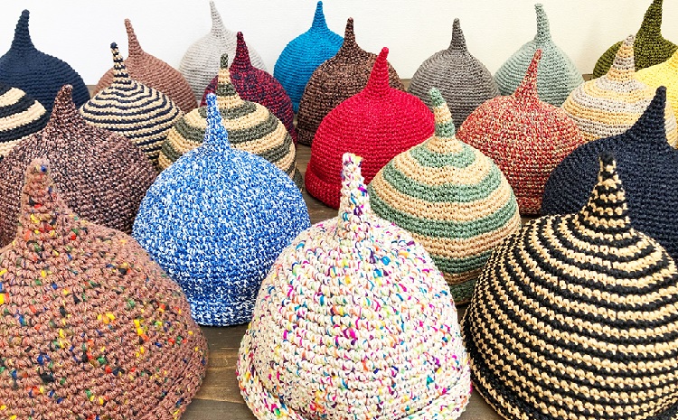 TuNo (ツノ)が特徴のTuNoベレー。1年中被って頂ける和紙糸・コットン。