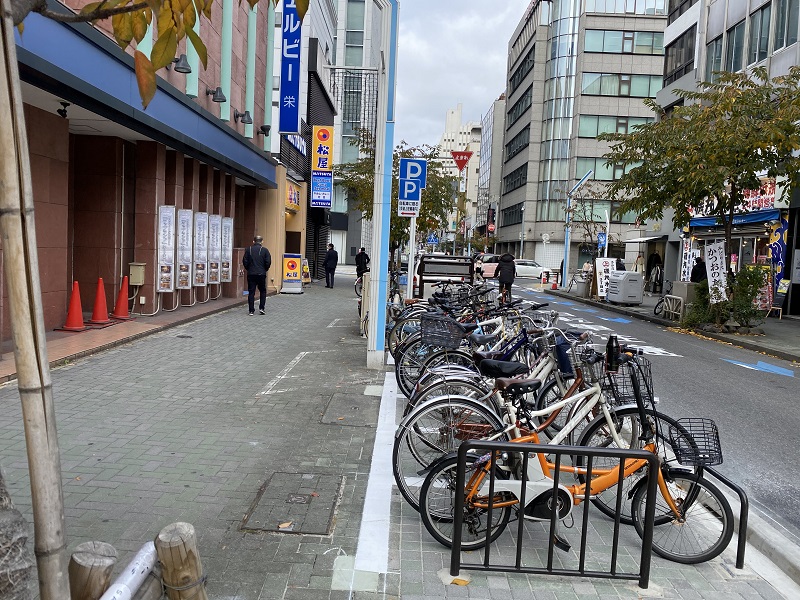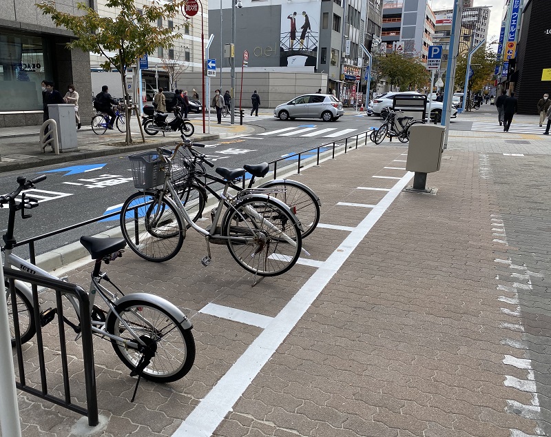 歩道に多くの自転車が停められた場所が歩道になったり、さらに自転車の通行帯も記されたり、快適感いっぱいになりました。