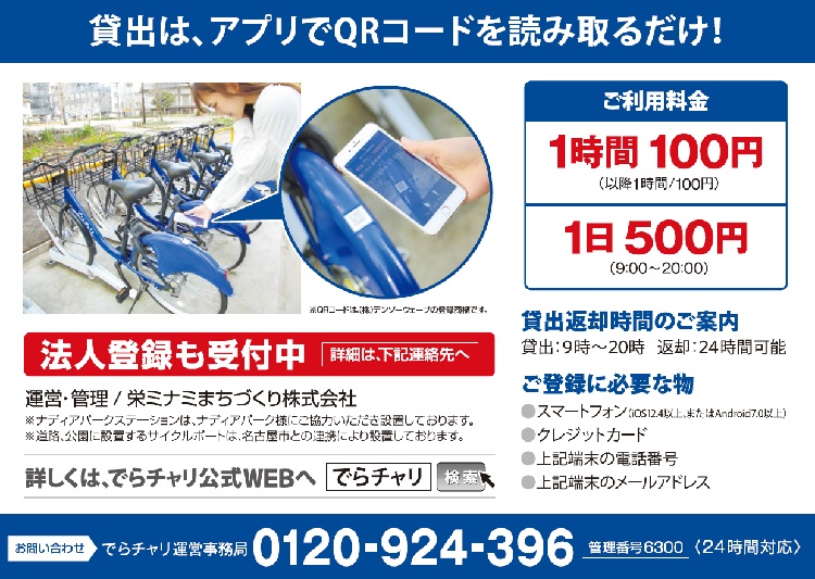でらチャリの利用方法、ステーションMAPなど詳しくは、公式HPへ