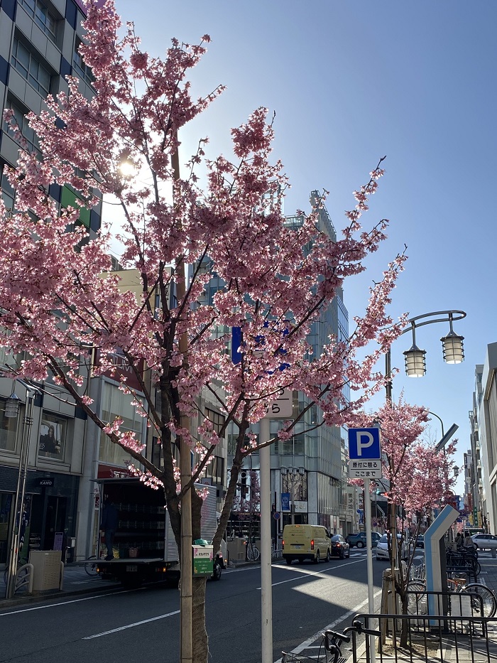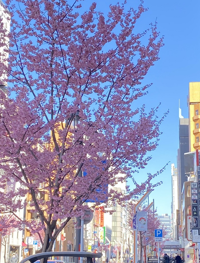 栄ミナミの早咲きの桜が咲いています!
