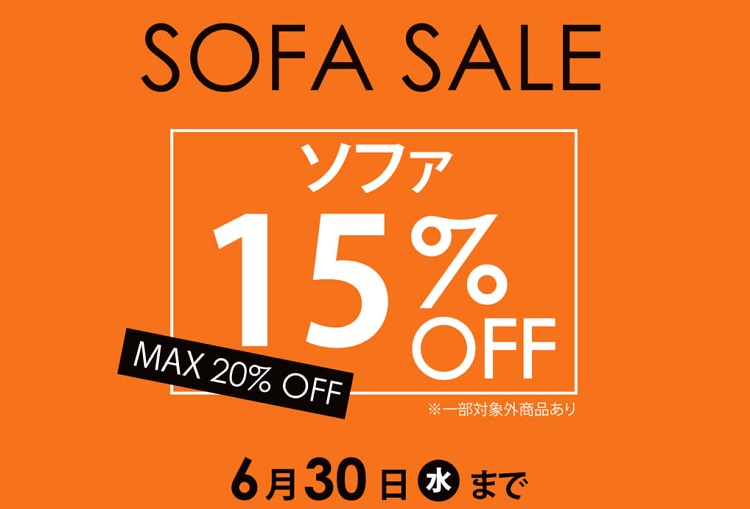 「スキャンティーク」では只今ソファほぼすべて15%OFF、最大20%OFFとなるセールを開催中です!
