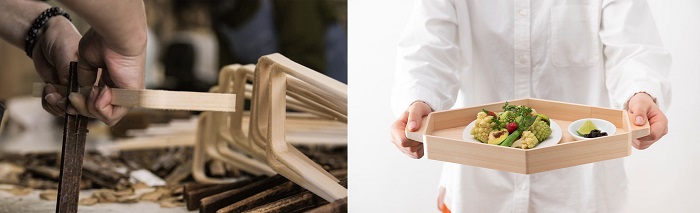 8月から秋に向けての期間出店は、尾張地域で昔から伝統的な職人技で作られてきた「三方(さんぽう)」の素材、技法を元に