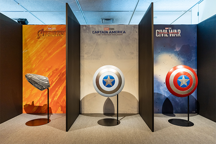 キャプテン・アメリカ歴代のシールドを展示