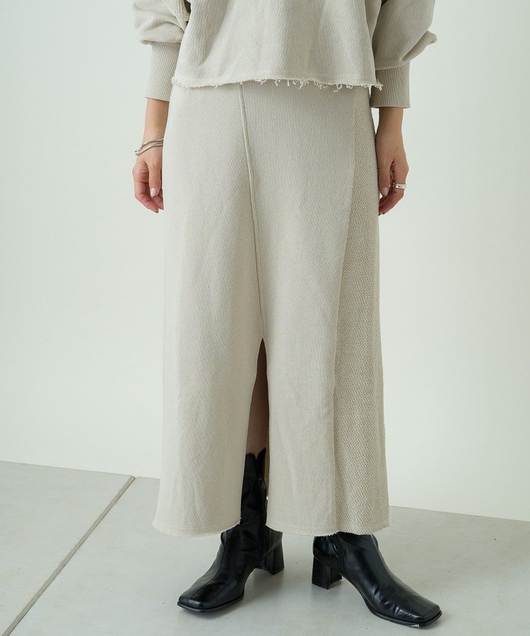 ルーズさのあるスウェットスカートですがIラインシルエットで上品さを演出。