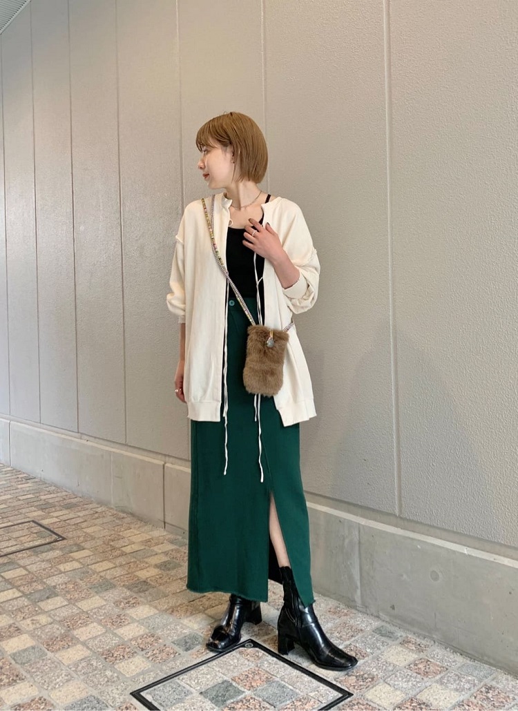 SETUPはもちろん、デニムでカジュアルに着ても良し。今季トレンドのマーメイドスカートとも相性抜群です。