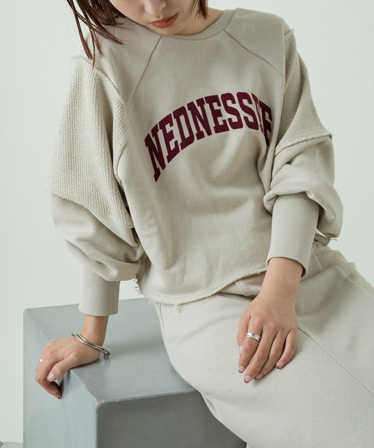 ラフスタイルでロゴスウェット、フェミニンスタイルはカーディガンで選びいただけるのも楽しんで頂けます。