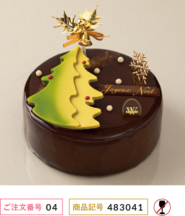 ベルギー王室御用達のチョコレートブランド。チョコレートの濃厚な味わいを楽しめるケーキにピスタチオ香るオリジナルのツリーのチョコレートを飾り、上品に仕上げました。