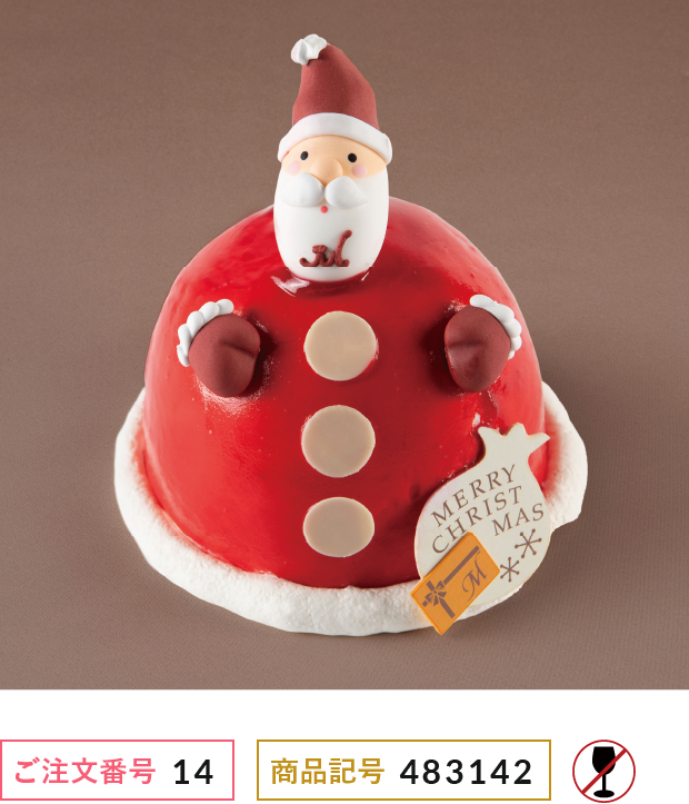 「堂島ロール」の〈パティスリー モンシェール〉が作る、とびきりキュートなサンタのケーキ。大きな体の中にはふわふわの生地とフランボワーズムースやフルーツが。見ているだけで心が弾むクリスマスケーキです。
