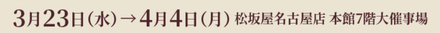 ※本展覧会は、大丸松坂屋各種カード会員様、ウェブ会員様、アプリ会員様ご優待などをお持ちのお客様のご優待を除外とさせていただきます。あらかじめご了承願います。