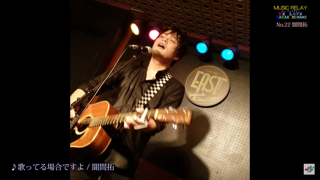 ミュージックリレー 22は、「聞間拓」さん。浜松の路上で歌い手として産声をあげ、全国路上LIVE放浪後、FMでのラジオパーソナリティを経て上京。 様々なユニット、バンドで精力的な活動、ギターを担いで四国八十八箇所霊場巡りなどを経験。2010.11 小川徹(Vo、Pf)とのユニット「ききまたく」として始動。 そのワンマンLIVEは初にもかかわらず300人の動員を記録。 渋谷公会堂でのライブ 渋谷duo MUSIC EXCHANGEでの500人動員ワンマンライブ などを経て 2013年 聞間拓 としてソロ活動も本格化。生活を全て音楽に切り替え 全国ライブ展開をスタートする。 現在、年間250本にも及ぶライブを全国的に展開中。ソロ、ユニットに関わらず、圧倒的な熱量で、見る人のライブ観、人生観をも揺さぶるスタイルとして、 インディーズライブシーンで注目されている。