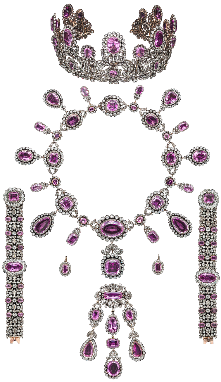 ヴュルテンベルク王室旧蔵 ピンク・トパーズとダイヤモンドのグラン・パリュール(※1)