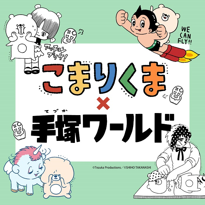 人気イラストレーター 小鳥遊しほデザインによる「こまりくま」と、名作「ブラック・ジャック」「鉄腕アトム」「ユニコ」などの人気キャラクター、