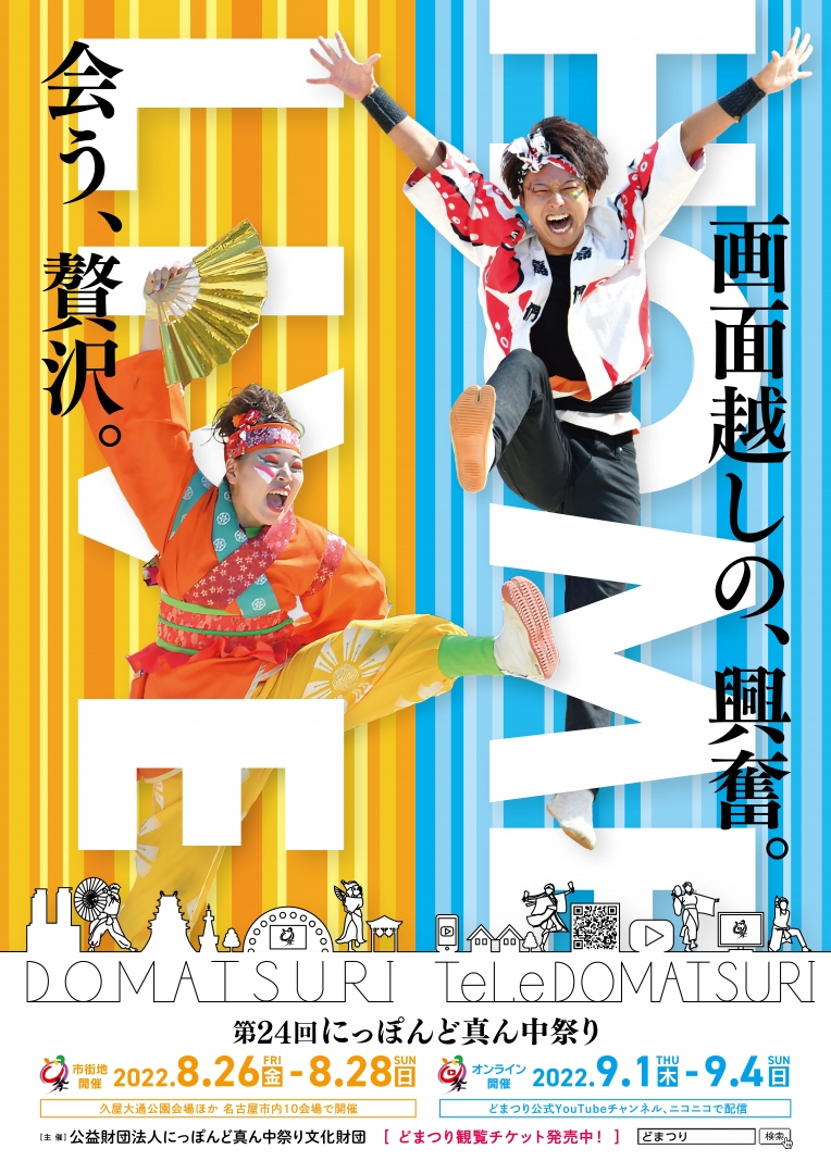 真夏の名古屋を舞台に繰り広げる日本最大級の踊りの祭典、にっぽんど真ん中祭り(通称:どまつり)が、今年も開催されます。今年は、栄ミナミを中心とした市街地開催に加え、Youtubeやニコニコ動画でのオンライン開催も実施されます。