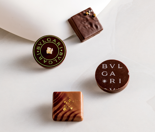 「ブルガリ イル・チョコラート サン・ヴァレンティーノ 2023」は、チョコレート・ジェムズ(宝石)で自然の贈り物を称賛し、人と自然を愛する気持ちが、環境を大切にする想いを生み出し、未来への有機的なアクションへと繋がるようにと、4つのチョコレート・ジェムズに願いを込めてお贈りいたします。パッケージに施されたブルガリジュエリーのアイコンのひとつ、ディーヴァにもそのメッセージを継いだカラーがあしらわれています。
