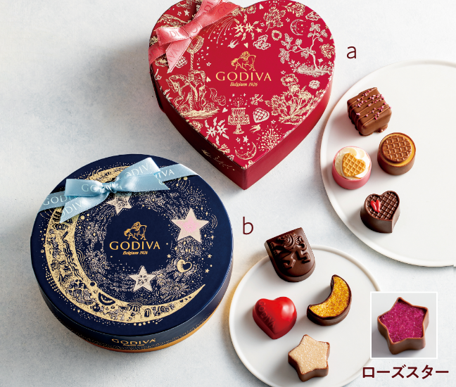 輝く未来を願って贈るコレクション。きらめく星のチョコレートが、ピンク色“ローズスター”だったら大当たり。パッケージの二次元コードからは今年の運勢を占うホロスコープも楽しめます。