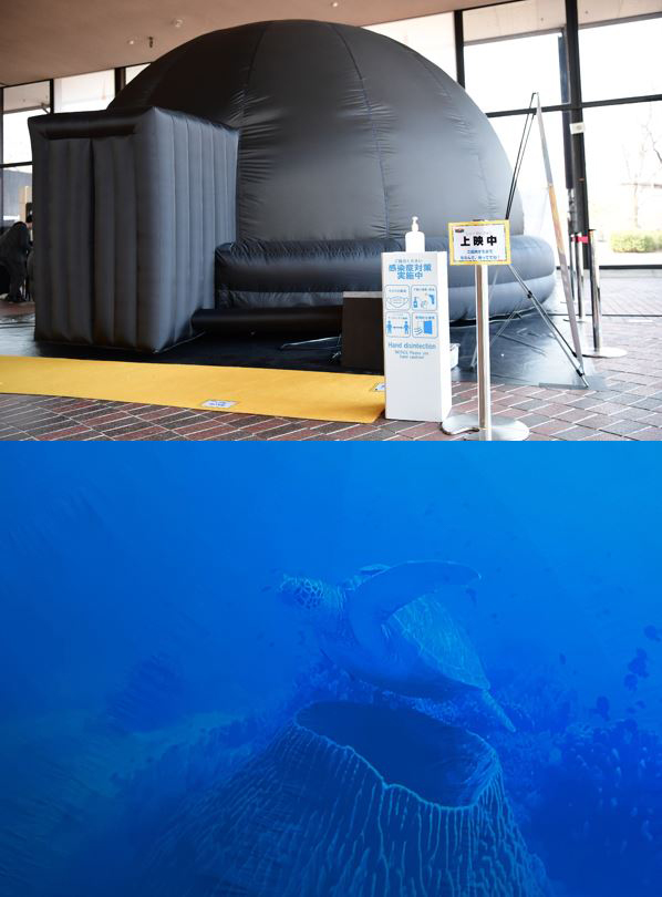 ドームの中の360度シアターでは「見たことのない地球」と出会えます!海の中にはどんな生き物が住んでいて、どんな世界が広がっているのか。海の中の散歩を楽しみましょう!