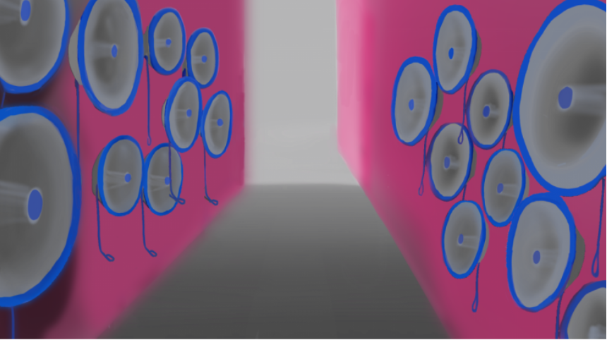 入口から物販まで8つのエリアをご用意しています。シャワーの蛇口を捻ると声が降り注いだり、扉の向こうから聞こえてくる声を立ち聞きしたり、ごみ箱からボツになったデモ音源が聞こえてきたり、様々な「声」を体験する演出を各エリアごとに施しています。
