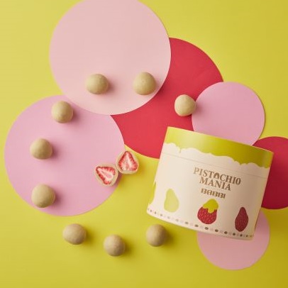 甘酸っぱいフリーズドライストロベリーをオリジナルレシピのピスタチオチョコレートでコーティングしました。