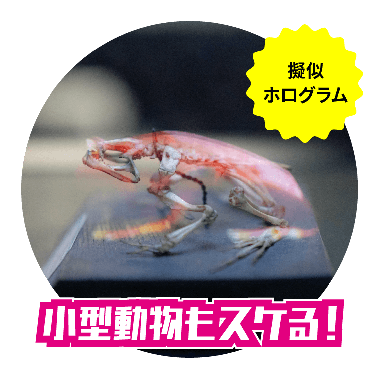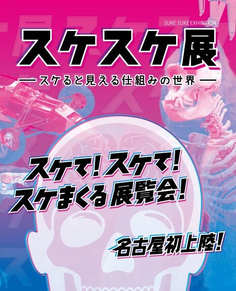 スケスケ展とは「見えない部分を見てみたい」という子どもの頃からの好奇心に応える展覧会です。様々な機械や構造物、動物の外側と最新の映像技術を組み合わせることで、内部の機能や構造の関連を紹介します。最新のデジタル技術を用いた「スケる」体験や、どうぶつ骨格模型/透明骨格標本の展示など幅広い世代の好奇心に訴える展覧会です。