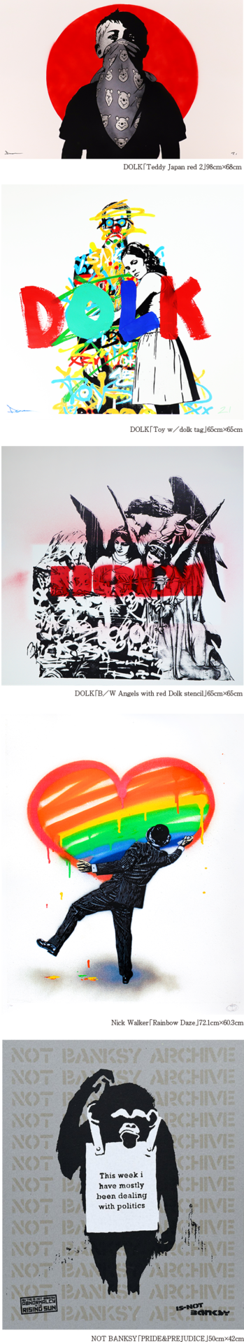 ドルク ニック・ウォーカー シーワン ジェイミー・リード ノット・バンクシー バンクシー カウズ インベーダー アンディ・ウォーホル キース・へリング ジャスパー・ジョーンズ 村上隆 草間彌生 岡本太郎 元永定正 他
