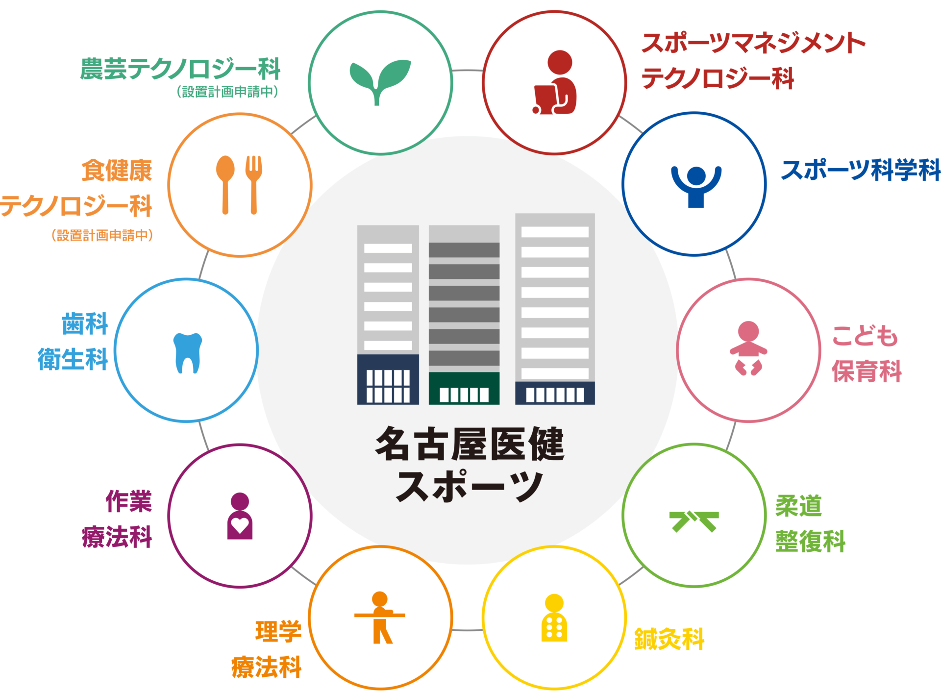 2013年4月に名古屋市中区栄に開校した専門学校です。現在、スポーツマネジメントテクノロジー科、スポーツ科学科、柔道整復科、鍼灸科、理学療法科、作業療法科、歯科衛生科、こども保育科、農芸テクノロジー科(設置計画申請中)、食健康テクノロジー科(設置計画申請中)の10学科を保有しております。全国に86校の専門学校・教育機関を持つ滋慶学園グループの1校であり、名古屋には姉妹校として、名古屋スクールオブミュージック&ダンス専門学校、名古屋デザイン&テクノロジー専門学校、名古屋ECO動物海洋専門学校、名古屋農業園芸・食テクノロジー専門学校があります。「業界が求める人材を業界と共に育成する」産学連携教育の元、業界で即戦力として活躍できる専門的な知識と技術を習得した人材を育成していきます。また、附属の接骨院・鍼灸院も併設しており、毎月多くの方が通院されております。
