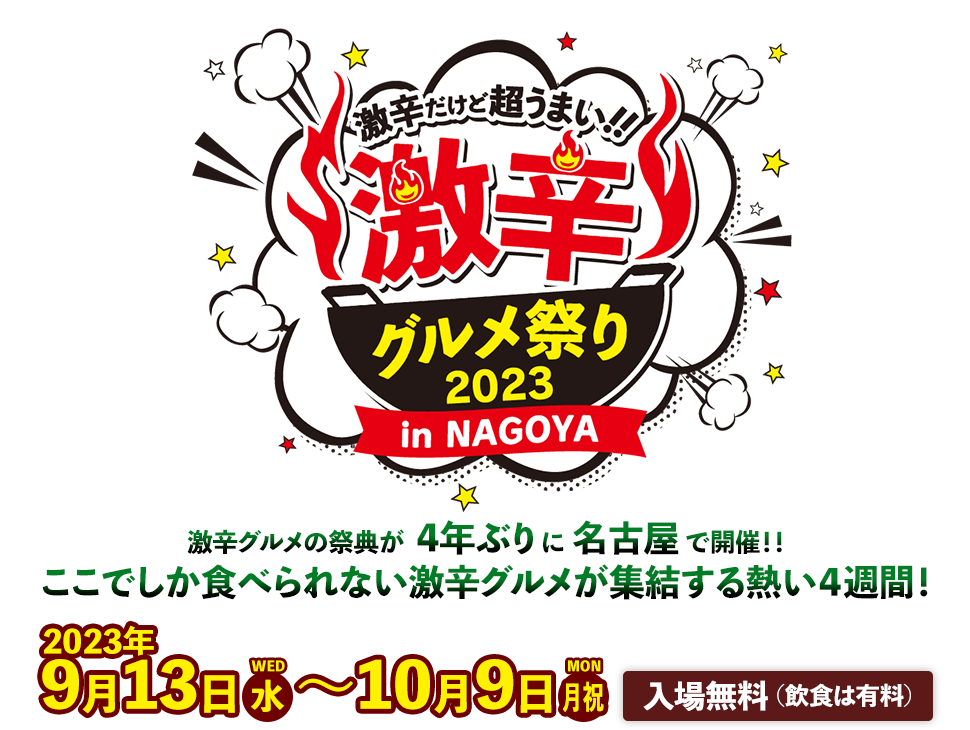 メ~テレ(名古屋テレビ放送)はテレビ愛知企画との共催で、9月13日(水)~10月9日(月・祝)まで、名古屋・栄の矢場公園特設会場にて「激辛グルメ祭り2023 in NAGOYA」を開催します。22日間…