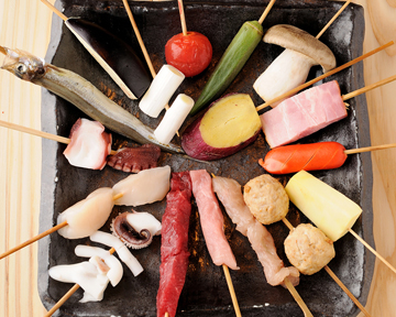 牛串、鶏串、豚串、魚介類、野菜の串など豊富なメニュー。